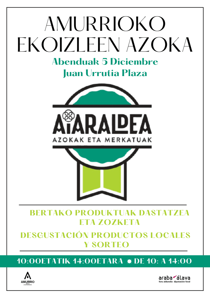 Con esta iniciativa, Amurrio reafirma su compromiso con el fortalecimiento del sector primario local y con el impulso de un consumo más cercano, sostenible y de calidad. Este evento está cofinanciado por el Ayuntamiento de Amurrio y la Diputación Foral de Álava.